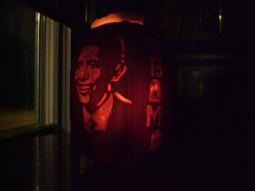 That is awesome! Not sure I can even get a pumpkin here. Chuck stole my Bangkok for Obama shirt and took it off to the States. It has Obama in Thai and English. It's pretty cool, but not as cool as your jack o'lantern!